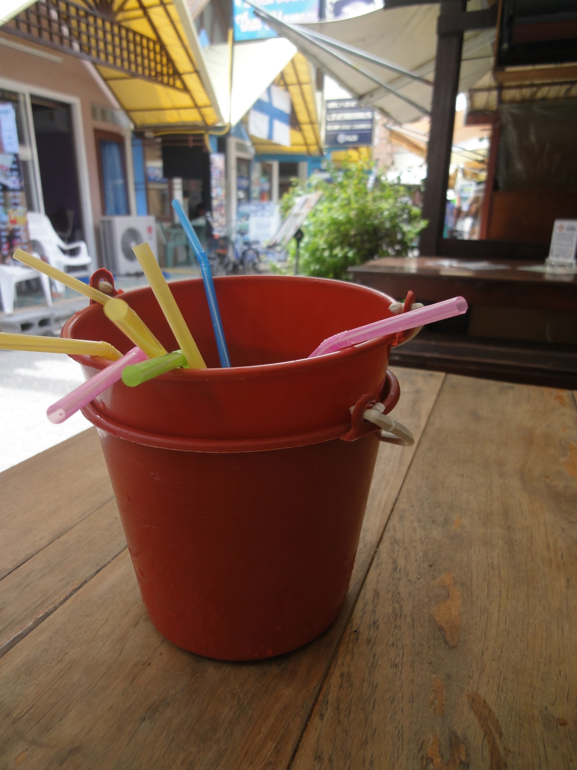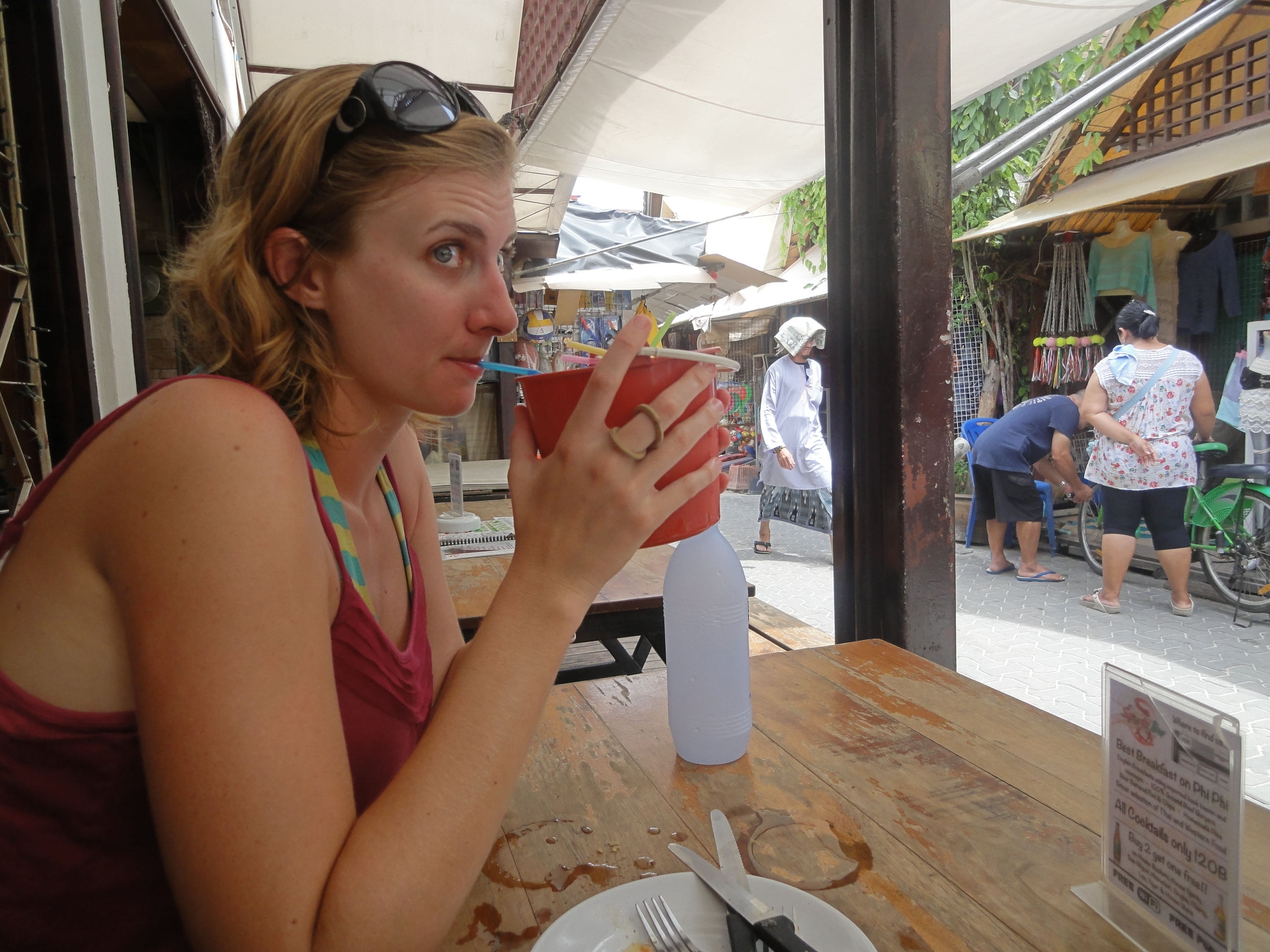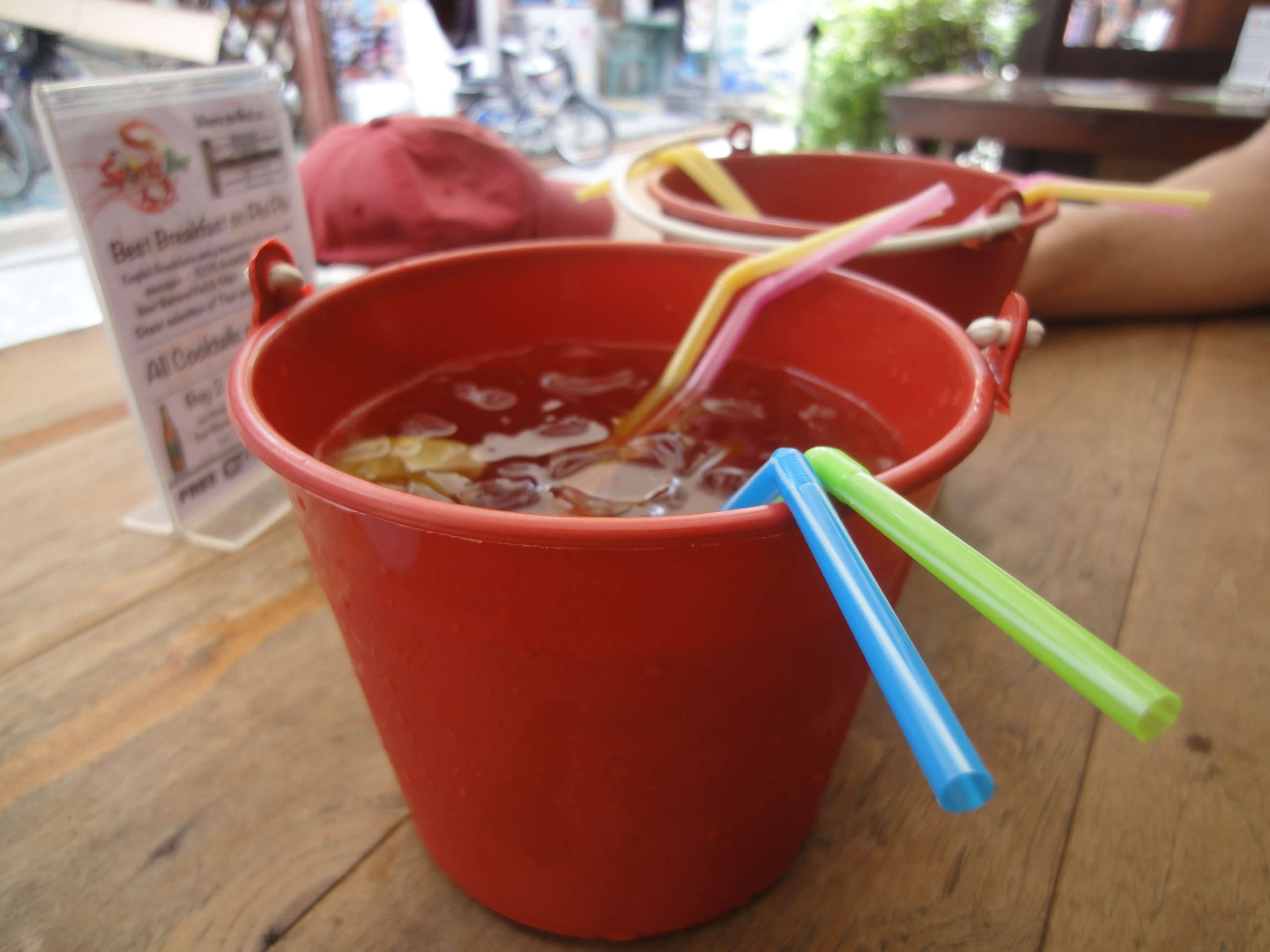 We stopped at an expat-popular spot for lunch after a morning boat trip to visit said adjacent island and saw that “buckets” were on the menu. For a deal.