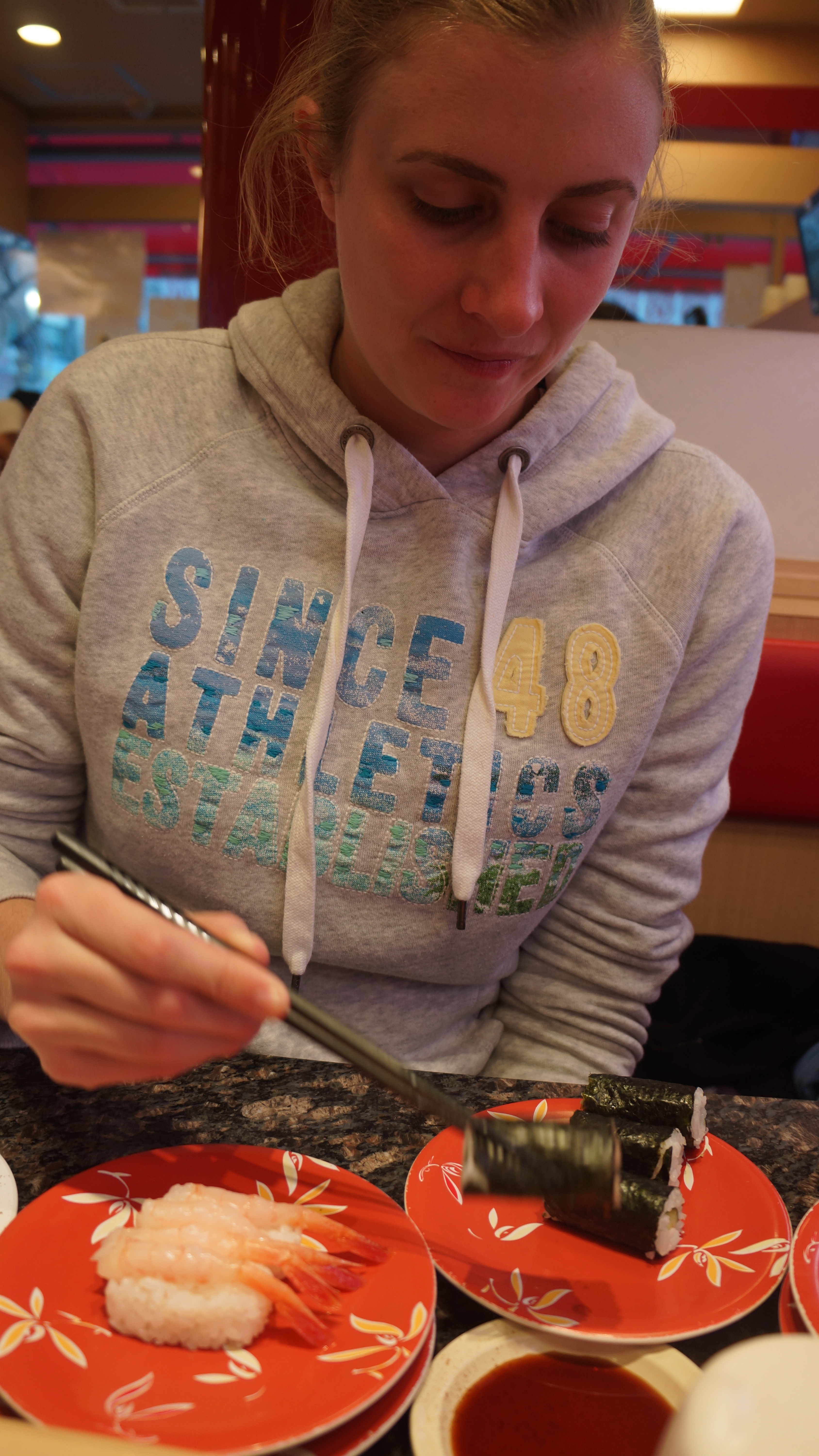 Sushi and strawberries sounds amazing. I love sushi but am always embarrassed when I go out because I can’t eat with chopsticks. And now I’m embarrassed that I admitted that…