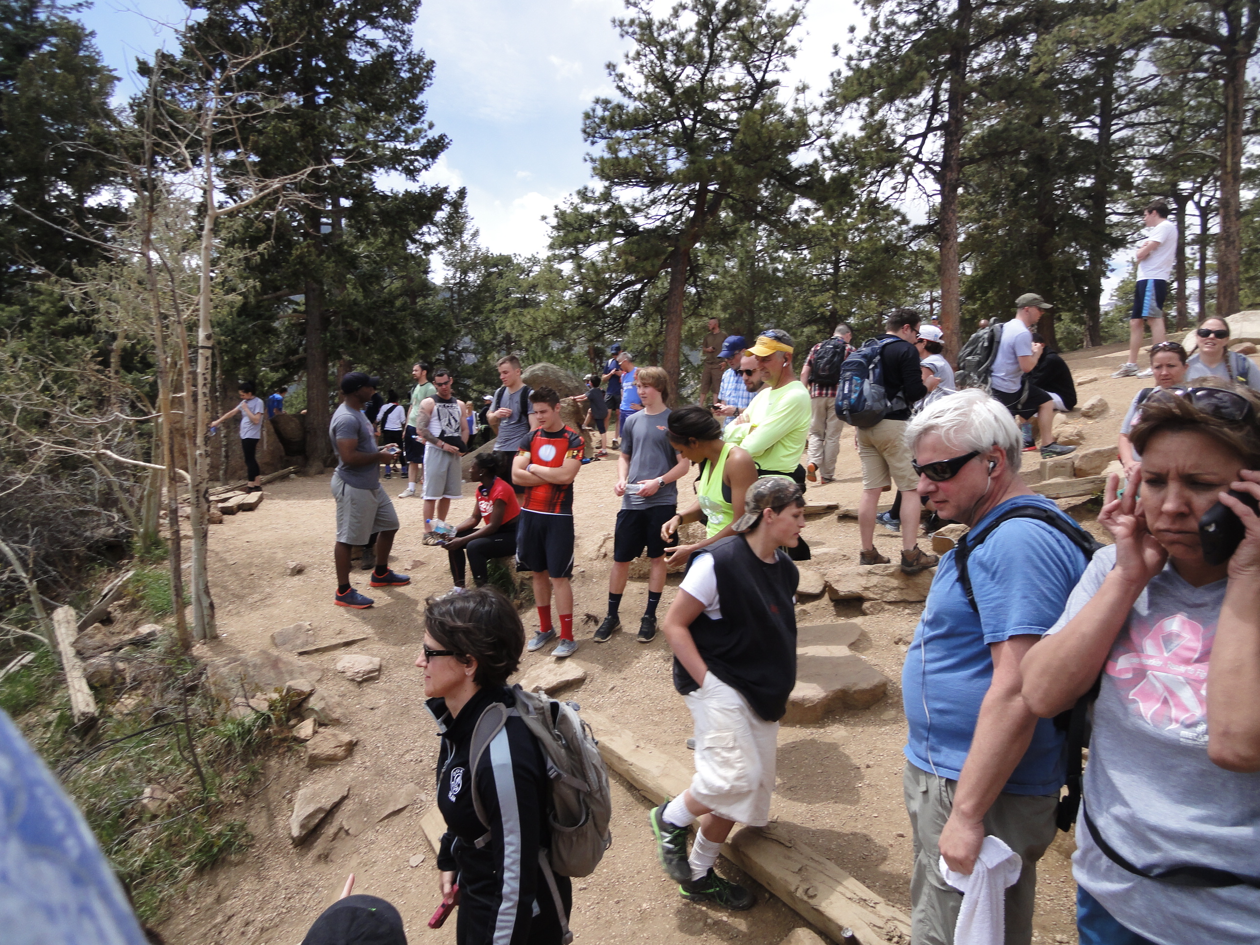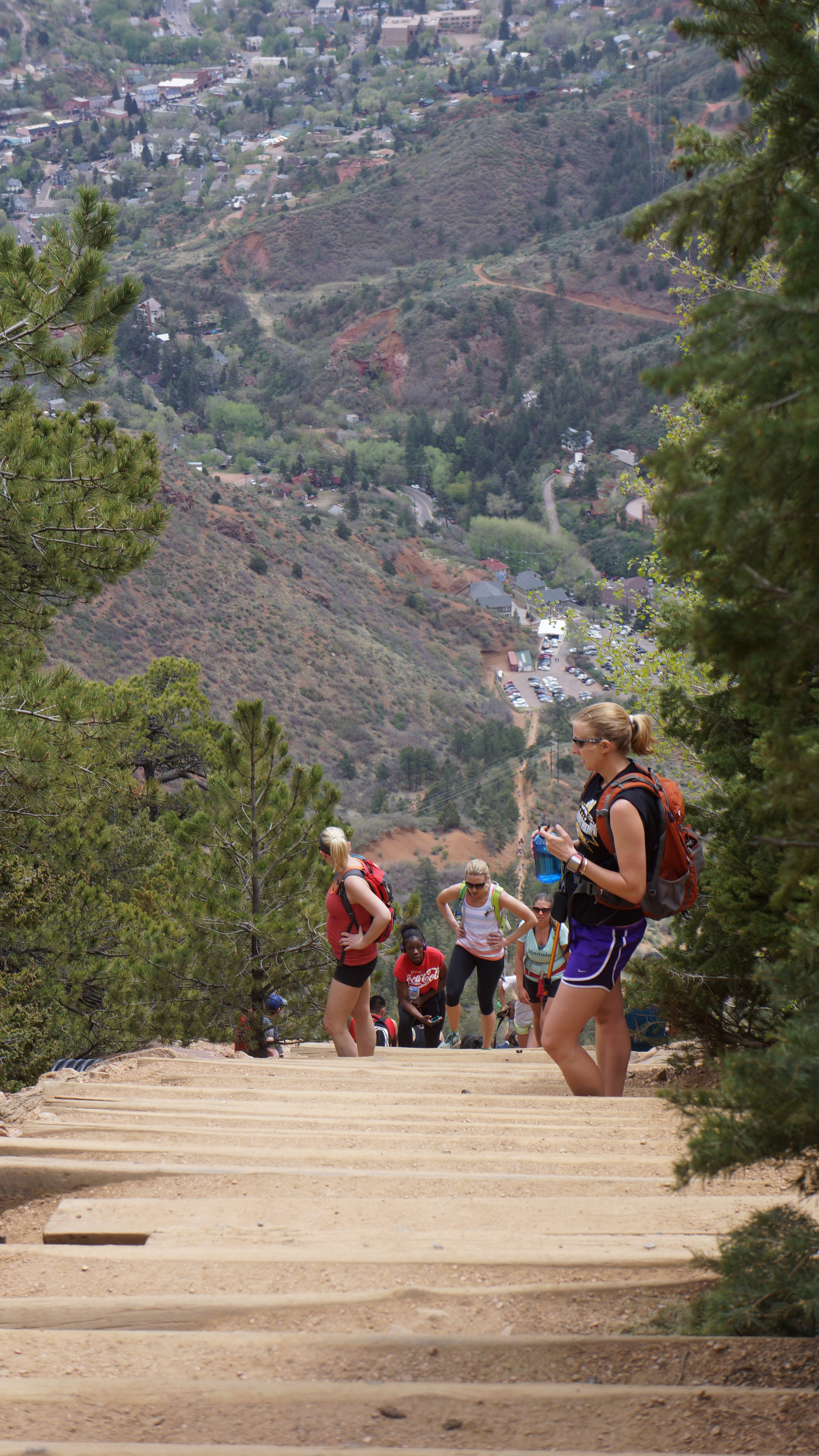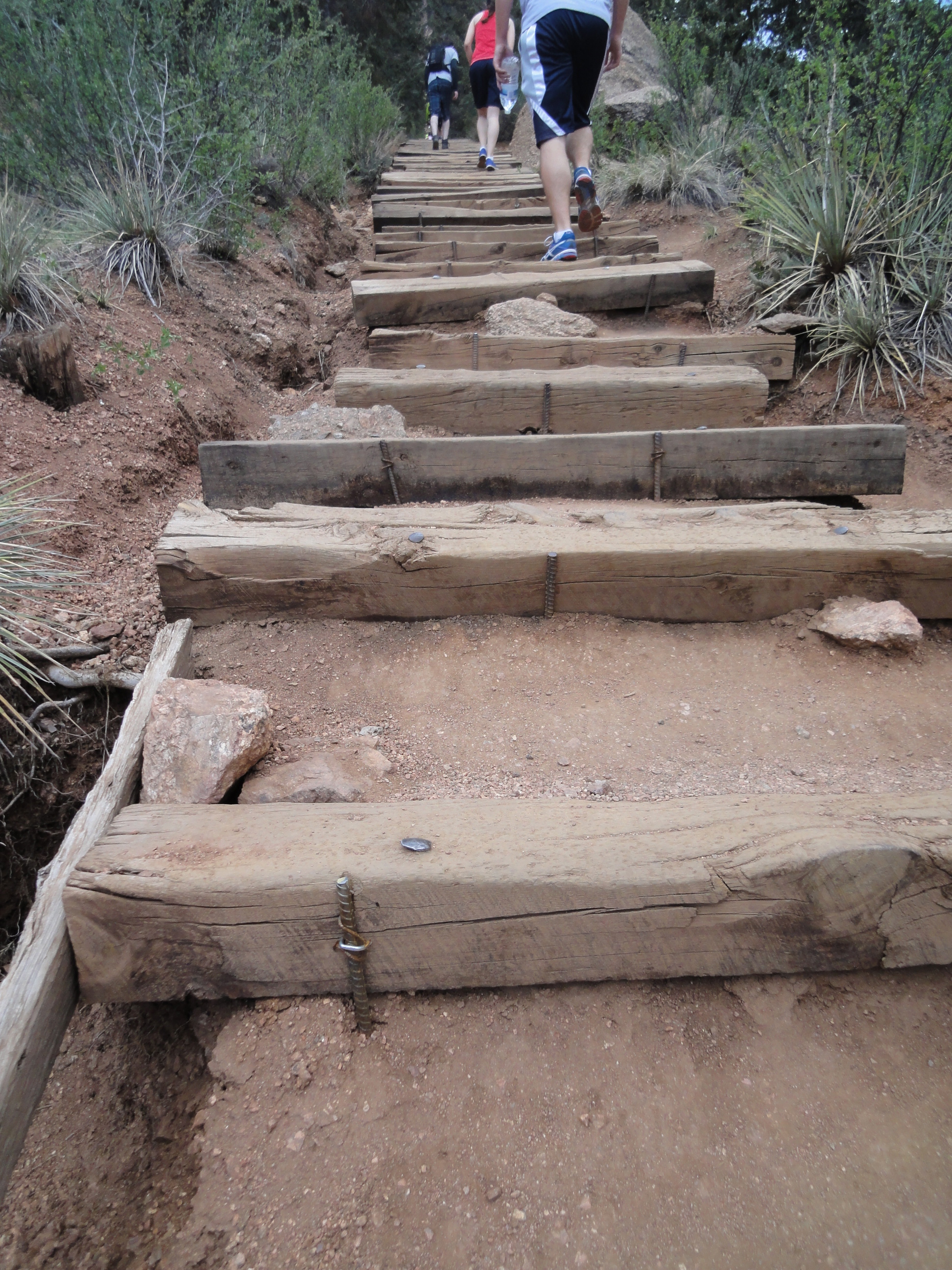 After watching people summit for a bit, we took the Barr Trail, about 2.5 miles, down instead of going back down the stairs like a few crazies were. Being afraid of heights, I had enough trouble going up without turning into a shaky mess, so going back down was not going to happen.