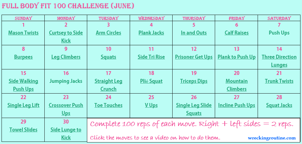 Of course, to keep things interesting, as if they aren’t already, I have a Full Body Fit 100 Challenge for you all. You can also check out last year’s June Ab Challenge for another option.