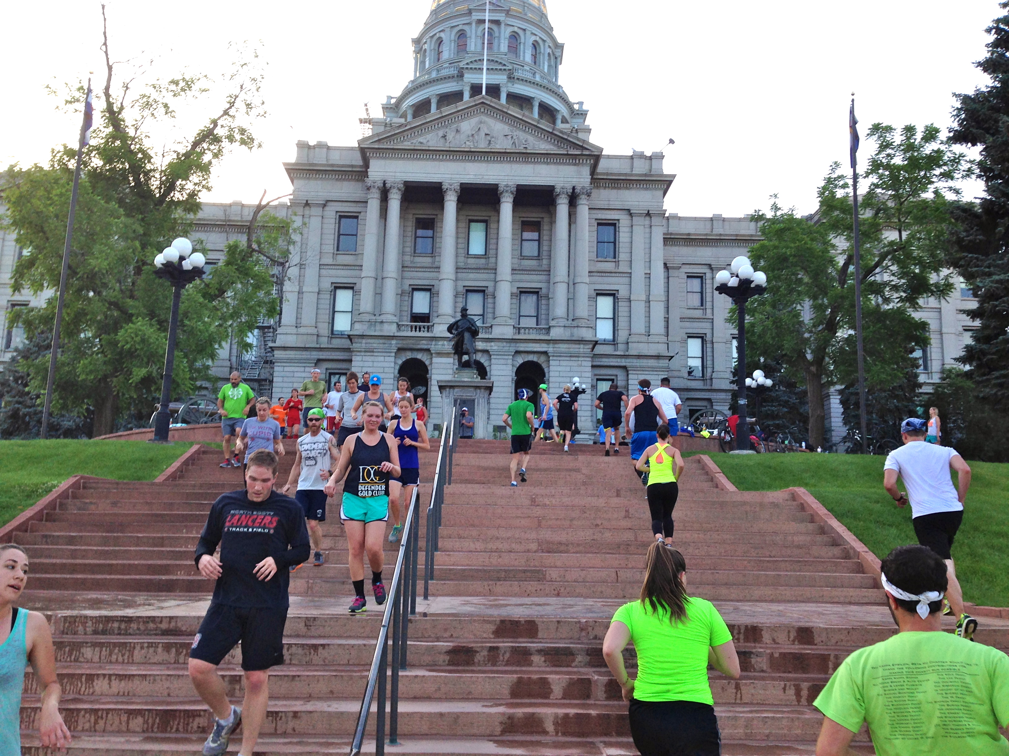 Let’s rewind a little to Wednesday morning. Rob and I got up bright and early (for us in the summer) and headed to Denver’s Capital Building to see what the November Project was all about.