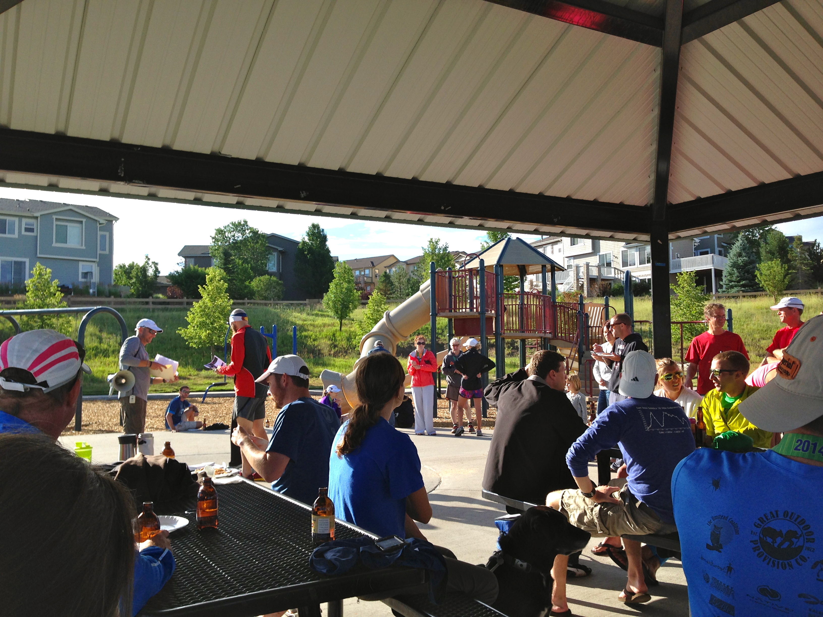 7:30 am – Awards begin at a park just across the football field. Our team placed first nin our division covering 60 miles in 10 hours! The overall winner, a female, ran something like 73 miles over the course of the night! What cracked me up was that each solo winner (top 3) they called up was limping worse than the person before them. It was somehow comforting to know that these amazing runners were human.