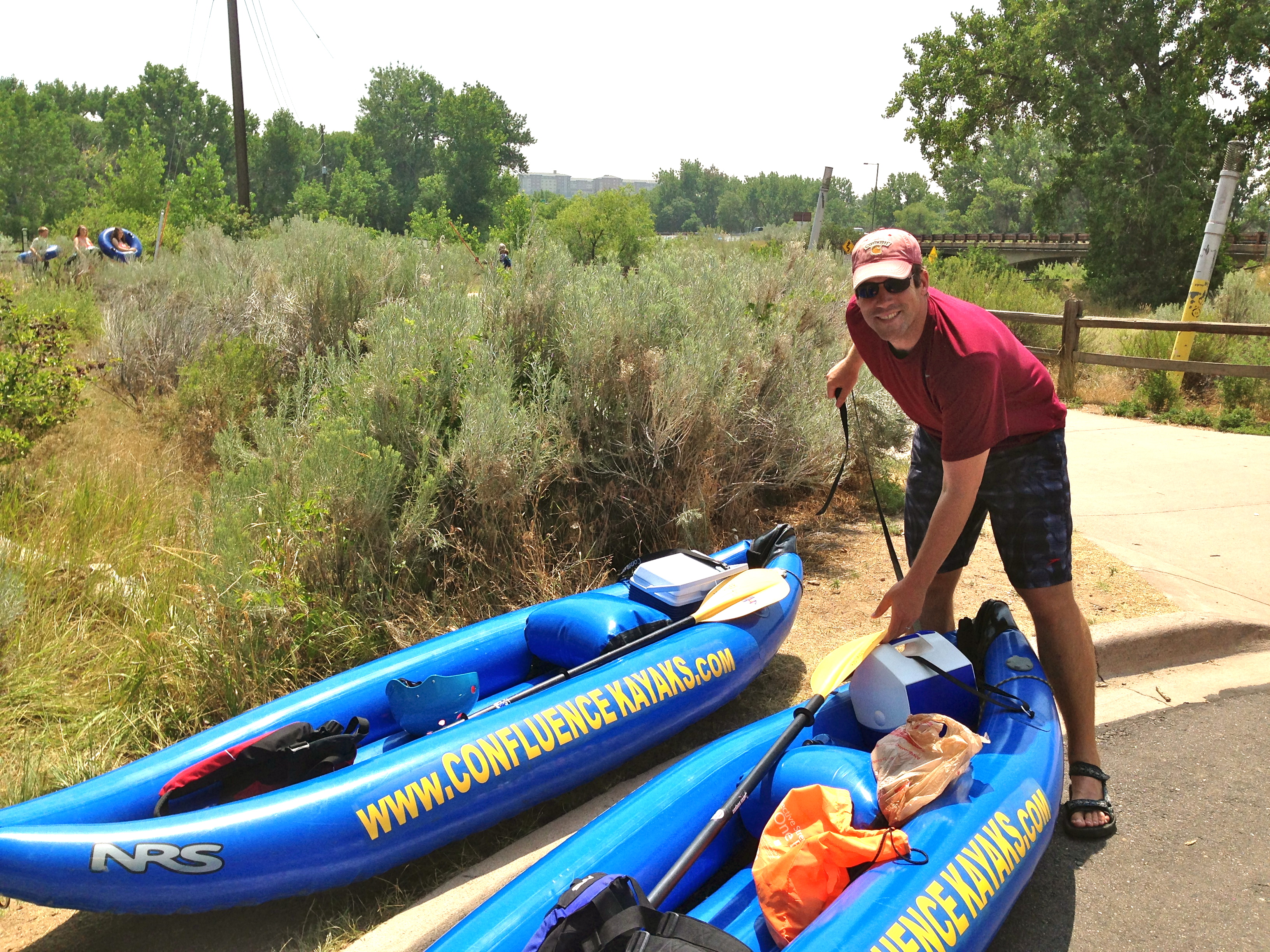 - Rent your gear from Confluence Kayaks. The sales people were super friendly and for $40 each, they outfitted us with blowup kayaks, paddles, helmets, life vests, and straps.
