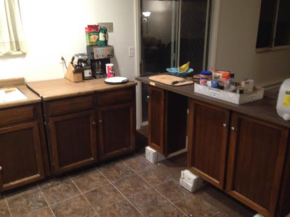 To give you an idea of the work we still need to do, we are using the old kitchen cabinets with a door glued to the top as our kitchen counters. It may not be pretty, but it is extremely functional.