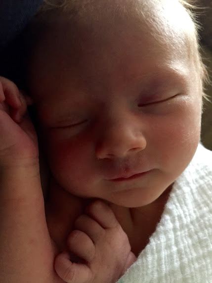 Around 2am, Dr. Bozeman started me on pitocin and broke my water. Then, it was a waiting game. Since I was still on magnesium sulfate, Carol kept the room cold because it makes patients hot. I also had to wear my glasses anytime I needed to focus on someone or something because I would go cross eyed (I have a very light prescription that I only use to drive.). There were numerous times where Rob and I would be in the middle of a conversation and I would just fall asleep. Thank goodness the US Open was on so he had something to do while I was passed out!