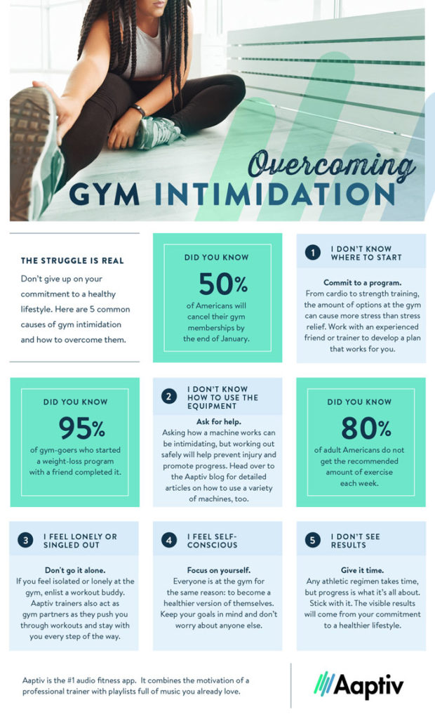 Get over your gym intimidation. When many of my clients start a new workout routine, they have a mental block about going to the gym. Unless you keep some equipment at home, you need to go. Keep in mind that most people at the gym are more interested in themselves than in you. (i.e. the people taking selfies in the mirrors).