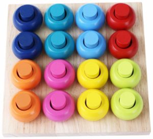 Zoey adores this game! It works on so many skills like colors, shapes, matching, numbers, etc. She plays it independently or with us and always seems to enjoy it. It is probably our go to no screen gift for a toddler.