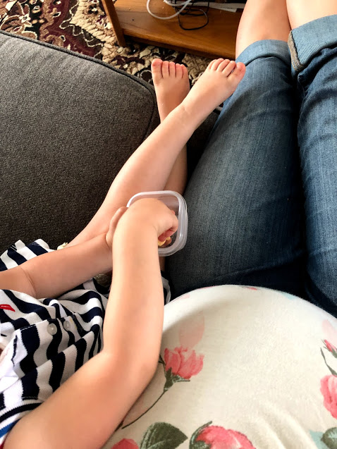 Having a busy toddler and a hungry infant around made it almost impossible for me to sit down to a meal during the day. The only way I could get in enough calories was to graze on snacks I could eat in a quick handful without a utensil. Snacks that saved me during the day were: