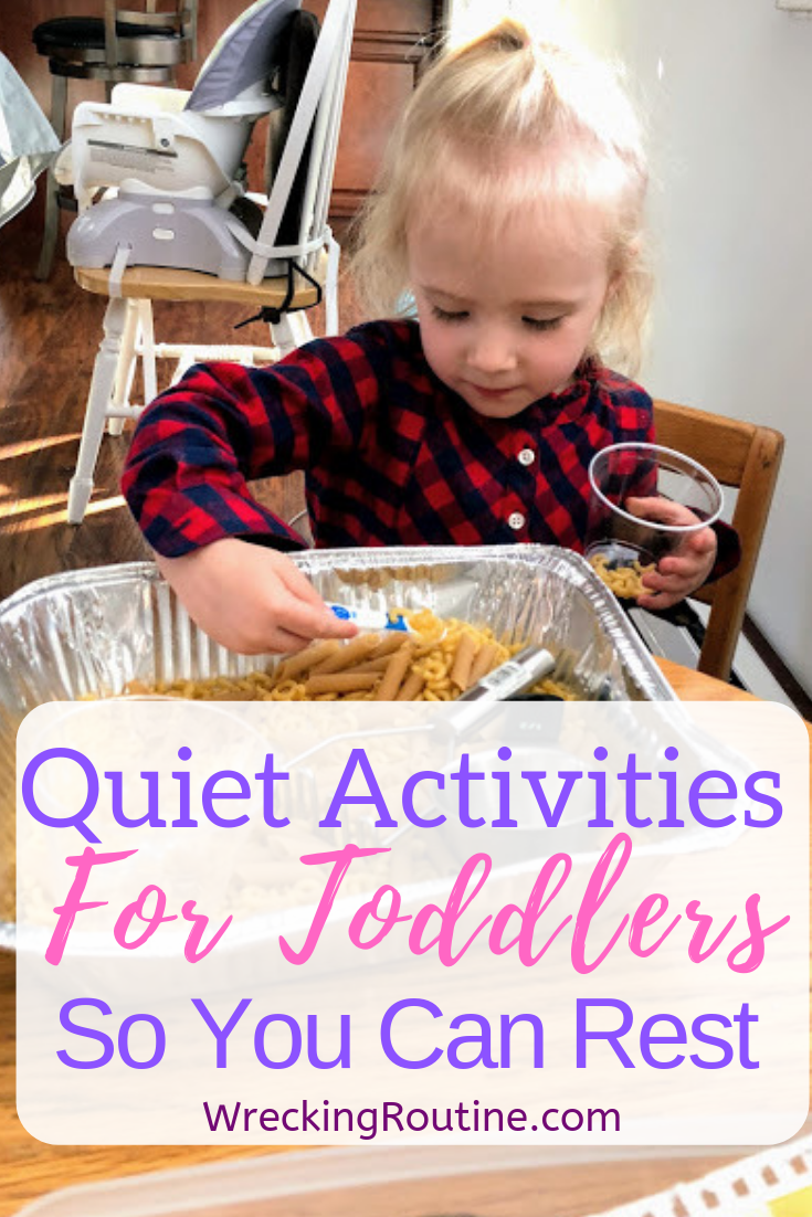 I do recommend that you avoid anything that requires lots of instant clean up: painting, shaving cream activities, or splashing games. Since you want to rest as much as possible while keeping your tiny people alive, you want to be sure the activities you set out for the kids are easy to prepare, easy to keep an eye one, and easy to clean up.