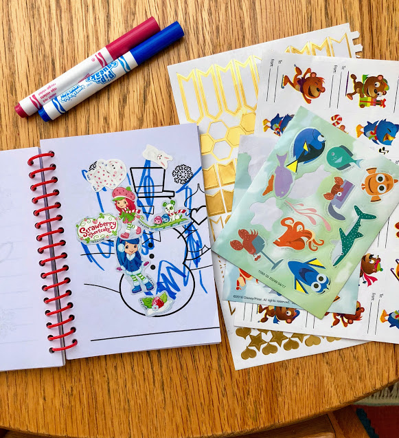 Stickers and Mini Coloring Book. Something about the smaller coloring book and the autonomy over the stickers keeps Zoey busy for over half an hour (an eternity in toddler time). While your toddler might need help taking the stickers out of the book, that is an easy task to accomplish from a prone position on the couch.