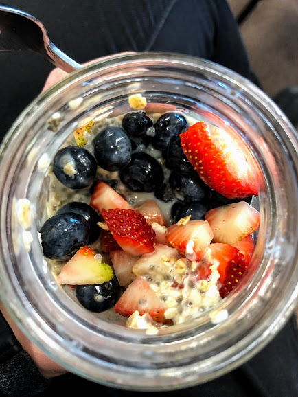 I started to get really into chia pudding right after William was born. I could it eat one-handed (so important when you are nursing and chasing a toddler) and it is easy to take on the go. This is a great option if you want to get past the traditional breakfast eggs or are trying to limit your simple carb intake at your morning meal.