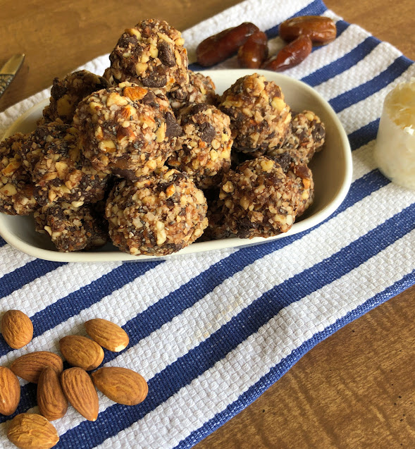 If you are looking for a meatless snack or a vegan dessert, these little guys fit both bills. They are naturally sweet and addictive. I like to double the recipe and freeze a batch. They do need to be kept cold, otherwise they crumble quite fast.