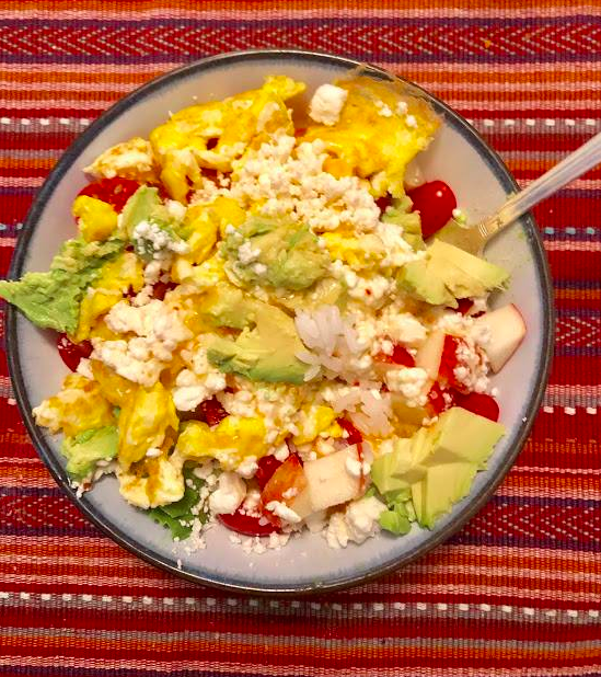 Simply chop up all the vegetables, add a bit of your favorite dressing, a sprinkle of cheese, and you are done! It is our go to dinner any time we are feeling like we need more vegetables, or have just returned from traveling and craving more greens.